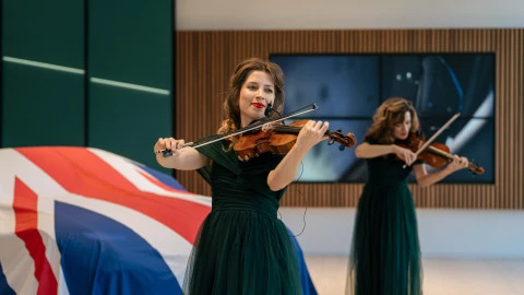 A atmosfera ganhou vida com uma melodia, tocada ao vivo por um conjunto de violinistas, criando uma envolvência elegante - cada nota ecoava no cenário com a mesma precisão e intensidade que define um motor Aston Martin, tocando os sentidos para o momento mais aguardado da noite - o momento da revelação. Sob um ambiente imersivo e envolta num véu de suspense, a silhueta do Vantage Roadster surgiu no centro da atenção. Quando o tecido deslizou e o modelo foi, finalmente revelado, a reação foi unânime - um instante de pura admiração, seguido por aplausos que ecoaram como um tributo ao design arrojado deste novo ícone.